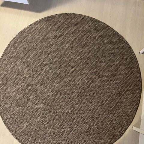 IKEA pyöreä matto beige. Matto on yksivärinen ja neutraalin sävyinen, sopii esimerkiksi olohuoneeseen, makuuhuoneeseen tai eteiseen. Pinta on pehmeä ja tasainen. Pyöreä muoto toimii hyvin pienten oleskelualueiden, pöydän tai nojatuolin alla.