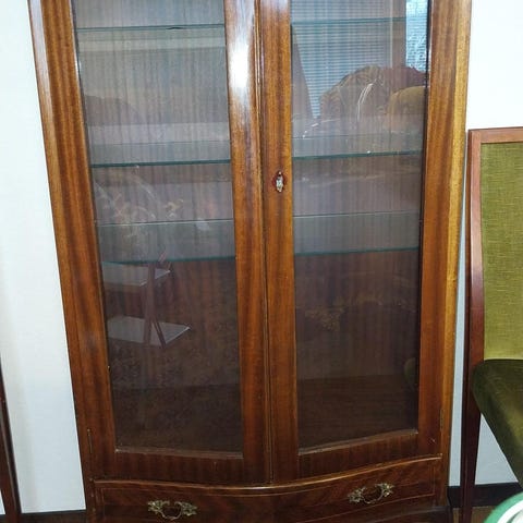 Puuinen vitriinikaappi lasiovella