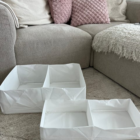 Harmaita säilytyslaukkuja. Ollut käytössä liinavaatekaapissa. Menevät kasaan!