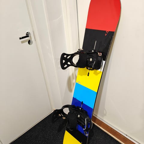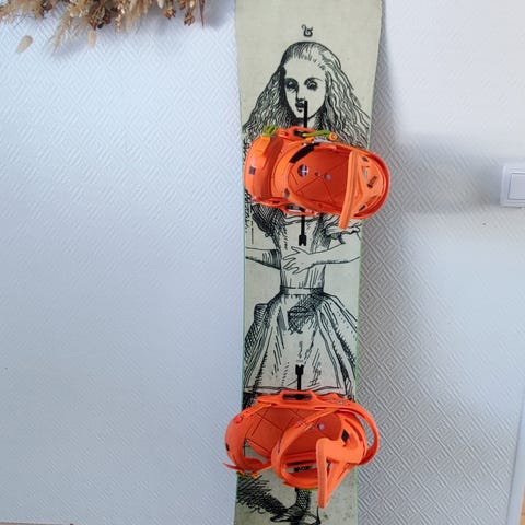 Burton lumilauta vanhanaikasila siteillä. Lauta on hiottu pohjasta pari vuotta sitten ja kantit teroitettu, jonka jälkeen lasketeltu viisi kertaa.