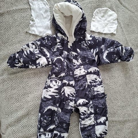 Muumi kevyesti topattu haalari, sopii välikauteen tai talveen. Koko 68. Pinta jonkin verran hylkii ja pitää vettä, vaikka haalarissa ei luekaan mitään virallisista ominaisuuksista. Väri murrettu sininen. Kunto hyvä, ei kulumaa tai karheutumaa.