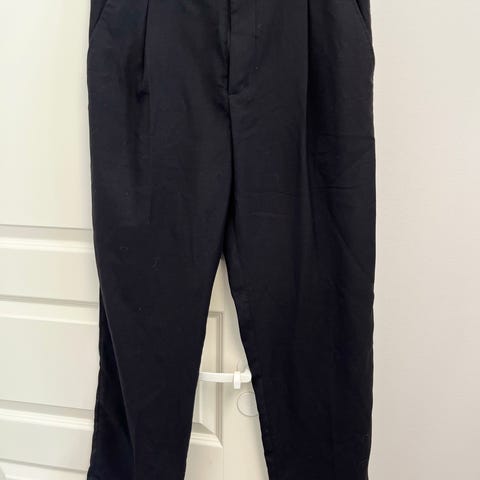 Hyväkuntoiset miesten mustat housut. Koko: M, vyötärö 96 cm ja pituus 105,5 cm.