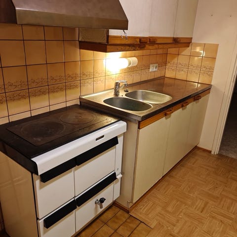 Kaksi uunia, tulipesä ja tuhkalaatikko sekä kaksi keittolevyä. Hella on vielä paikoillaan keittiössä. Myydään siinä kunnossa kuin on.