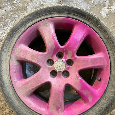 Aluvanteet hyvillä kesärenkailla, yksi vanne hieman naarmuuntunut, muuten ovat ehjiä.
