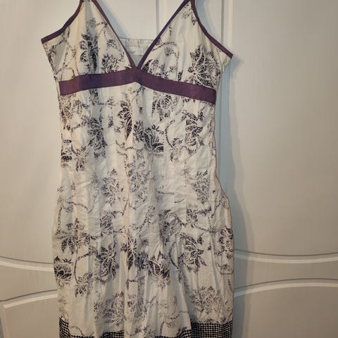 AX Paris mekko, koko L. Harmaa pohjaväri, jossa kukkakuviointi. Valmistettu polyesteristä. Pitkät hihat ja polven seudulle ulottuva pituus. Sopii arki- ja juhlakäyttöön riippuen asusteista. Ollut päällä kerran. Vetoketju takana.
