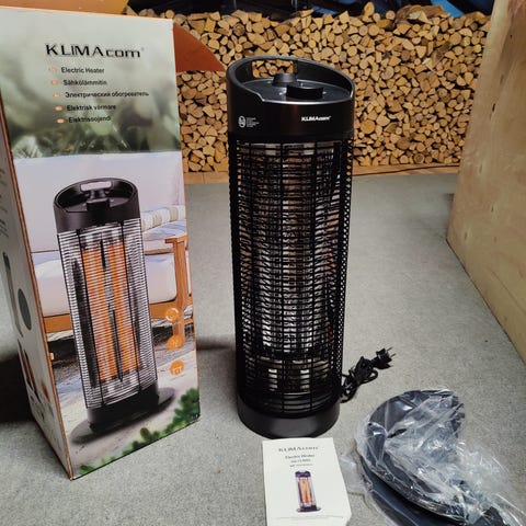 Sähköinen kattomallinen lämmitin, joka ripustetaan ketjulla tai koukulla katosta. Teho 1500 W, soveltuu terassin, parvekkeen tai muun ulkotilan lämmittämiseen. Laitteessa on heijastava kupu ja alaspäin suuntautuva lämpösäteily. Mukana kaukosäädin laitteen ohjaamiseen etäältä. Väri musta.