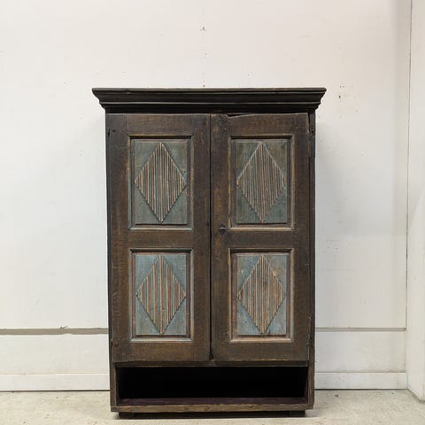 Rustiikkinen täyspuinen antiikki kaappi uuteen kotiin. Iästään huolimatta rakenne edelleen tukeva. Ovet toimivat. Ovien yläsaranat vaihdettu ja lukkosalpa lisätty. Avain tallessa ja lukitus toimii. Sisustassa jälkeä ja patinaa. Ei hajuja.