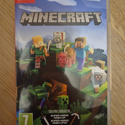 Nintendo Switch Minecraft peli. Fyysinen pelikasetti ja kotelo Nintendo Switch -pelikonsolille. Ikäraja PEGI 7. Moninpelitila tuettu, pelaaminen mahdollista sekä käsikonsolitilassa että telakassa televisioon liitettynä. Peli sisältää Minecraft-rakentelu- ja selviytymiselementit kuutioidussa pelimaailmassa.