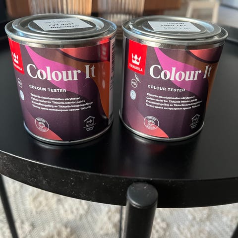 Avaamaton purkki mustaa kalustemaalia, jäänyt vaan käyttämättä. Ostettu huonekalun maalaamista varten mitä en omista ja kevätsiivouksessa löysin tämän kaapin nurkasta. Haku.