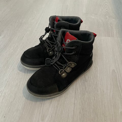 Liilat välikausikengät. Uutena ostetut, olleet yhden lapsen käytössä. Muuten erinomaisessa kunnossa, mutta kenkien kärjessä kulumaa (kuva).