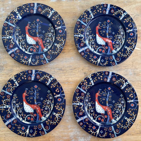 Iittala Taika muki ja lautanen tummansininen kuviollinen posliini