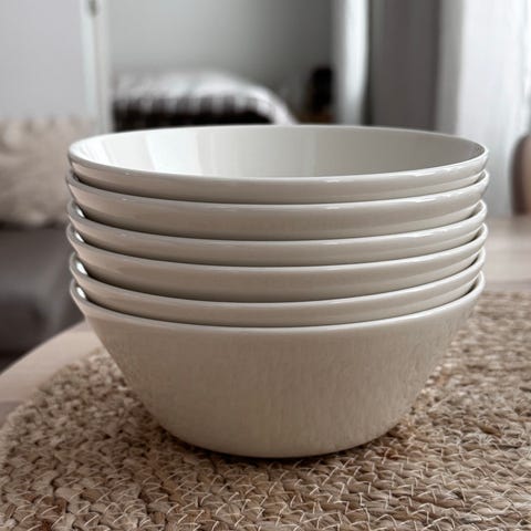 Iittala kulhot ruskea-valkoisella lasituksella. Astiat ovat keramiikkaa ja soveltuvat esimerkiksi aamiais- tai jälkiruokakulhoiksi. Kuvissa näkyy useampi samanlainen kulho, joissa on tummanruskea reuna ja valkoinen sisä- ja ulkopinta. Sopivat arki- ja kattauskäyttöön keittiön perusastioiksi.