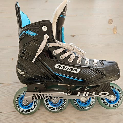 Rullakiekko- eli inline-luistimet streehockey’n pelaajalle. Komposiitista valmistettu kuori tukee nilkkaa hyvin.Rullakiekkoluistimien eturengas on takarenkaita pienempi. Näin vauhti paranee ja liikkuminen äkkikäänteineen on näppärää ja helppoa.Bauer RS -rullaluistimilla pysyt kiekossa kiinni ja olet aina muita askeleen edellä.Tuotetiedot:- Päällinen: Komposiitti- Hi-Lo-kisko