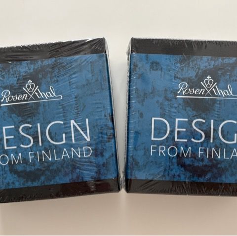 Rosenthal Winterreise suola- ja pippurisirottimet. Kaksi talonmuotoista posliinista sirotinta, joissa Rut Brykin suunnittelema Winterreise-kuviointi. Valkoisessa posliinissa on harmaan ja vaaleansinisen sävyisiä talo- ja puuaiheisia piirroksia. Kunto huippuluokkaa, eivät ole koskaan ollut käytössä. Mukana alkuperäinen kotelo. Voin postittaa
