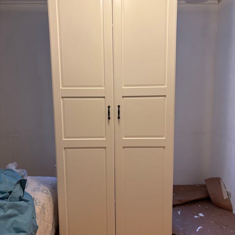 Siisti jysk kaappi. Toisella puolella tanko ja toisella puolella hyllyjä. Hp 60