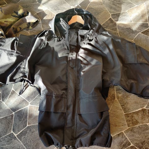 Fleecetakki, nykyään minulle suuri, pitää lämpöä ja tuulesta. 183cm ja 120kg miehelle hyvin sopiva, jää tilaa jotain alle.