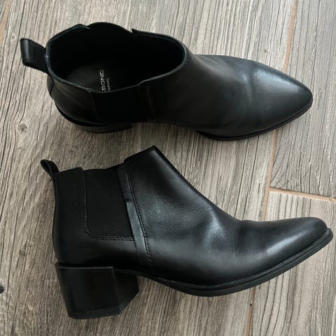 Mainiossa kunnossa olevat mustat 100% mokkanahkaiset nilkkurit.