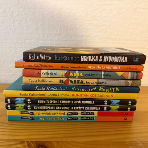 Myydään kirjapaketti, joka sisältää 4 x Ella-sarjaa, 3 x Karoliina-sarjaa, Kätkijät-pokkari ja Hurjien tarinoiden talo.