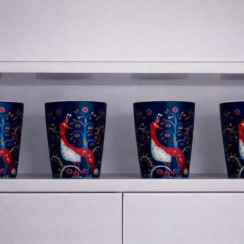 7 kpl kahvikuppeja ja 9 lautasta. Taika-kahvikuppi ja -lautanen on Klaus Haapaniemen suunnittelema. Iittalan Taika sarja on muotoilultaan hyvin yksinkertainen, mutta fantasiamaailman henkeä huokuva kuviointi herättää astiat eloon.