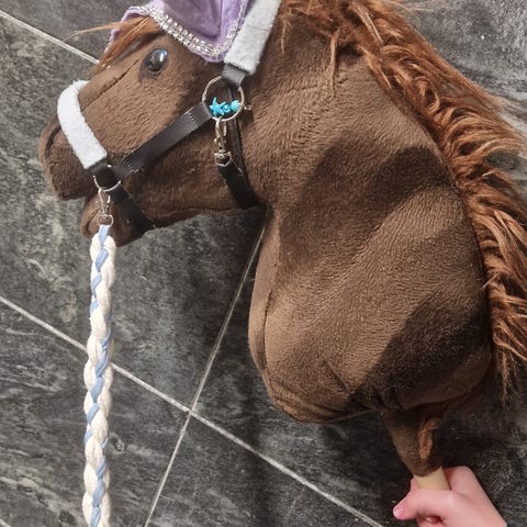 Hyvä kuntoinen keppihevonen seuraavalle leikkijälle.