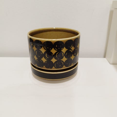 Arabian Ruska-sarjan kaksiosainen kukkaruukku ruskea keramiikkaa. Väri vaihtelee tumman ja vaalean ruskean sävyissä.