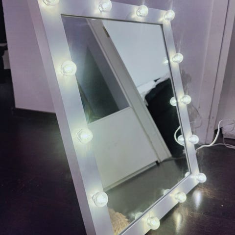 Valot teipattuna tarrateipilla kiinni peiliin, mutta tarvittaessa saa irti. Valoissa saa valittua 3 eri värilämpötilaa sekä 3 eri tehokkuustasoa.