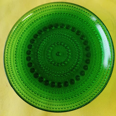 Arabia Kastehelmi lasilautanen vihreä