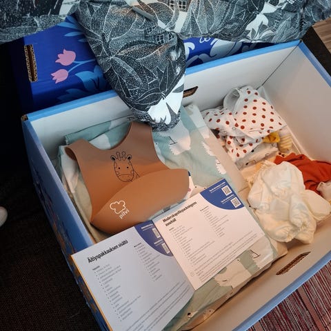 Äitiyspakkauksen 2025 tarvikkeita