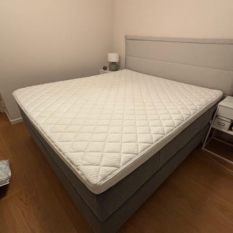 Hyvässä kunnossa, mutta yksi lauteista katki – ei kuitenkaan vaikuta nukkumismukavuuteen tai sängyn käyttöön (helppo korjata, yksi lauta tarvitaan). Takuuta jäljellä 13 vuotta.