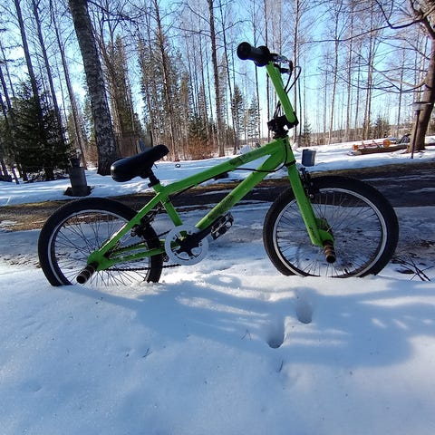 Bmx temppupyörä. Pyörässä on musta runko, mustat renkaat ja satula sekä alumiiniset polkimet. Sopii nuorille tai aikuisille kaupunkiajoon ja temppuiluun BMX-tyyliin.