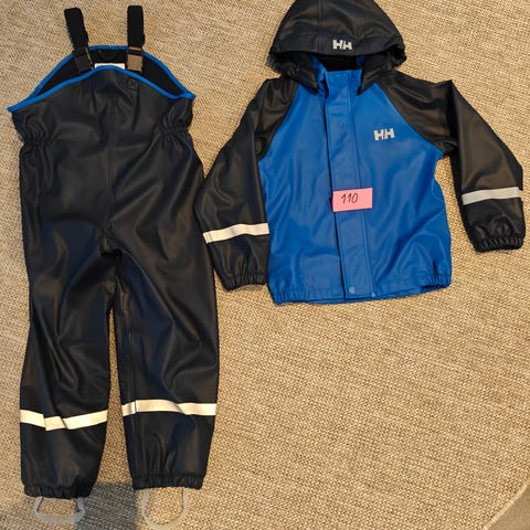 Käyttämätön Helly Hansen sini-musta poikien sadeasu, koko 128 cm.