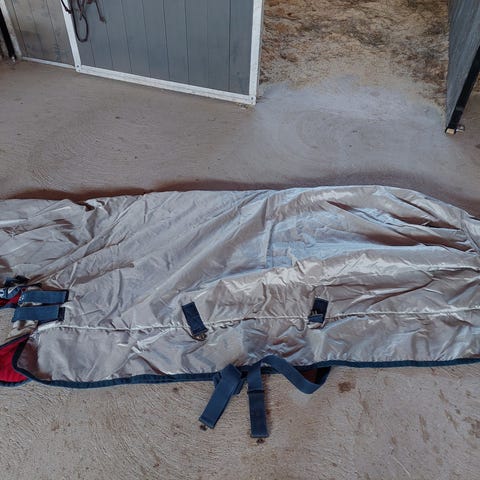 Bucaksen vuoreton loimi, koko 145cm. Etusoljen kohdalla sisävuoressa reikä. Muuten en löytänyt moitteita. Sisäpuolelta hieman likainen.