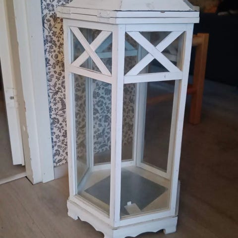 Iso tukeva lyhty, jonka sisäkoristeet saa vaihdettua oman maun mukaan. Kuvassa alkuperäiset syksykoristeet. Korkeus noin 35cm.