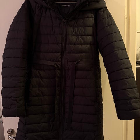 Musta, naisten Didriksons-merkkinen lämmin toppatakki. Kokoa 38. Parkamallinen. Ei käytön jälkiä, ehjä ja siistissä kunnossa.