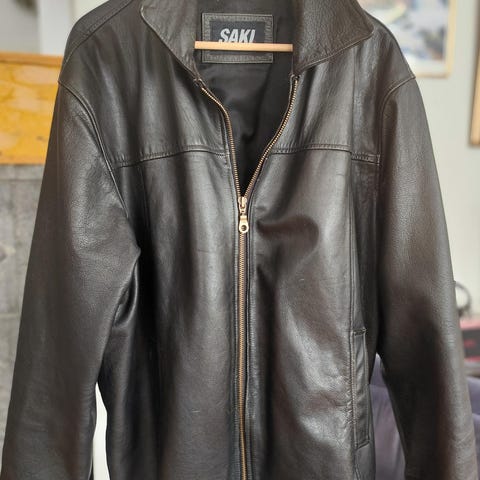 Hyväkuntoinen miesten Saki merkkinen nahkatakki. Koko 56, vastaa ehkä L kokoa.