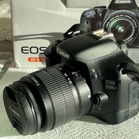 Canon EOS 550D + 2 objektiivia + laukku + 2x akut, kirjat, usb
