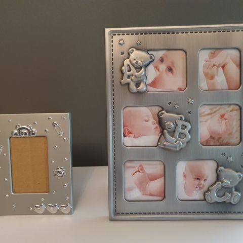 Vauva-aiheinen valokuvakehys, auto ja ruukku. Esim. Babyshower- tai ristiäisjuhliin. Ruukku sisäpuolelta rustiikkinen.