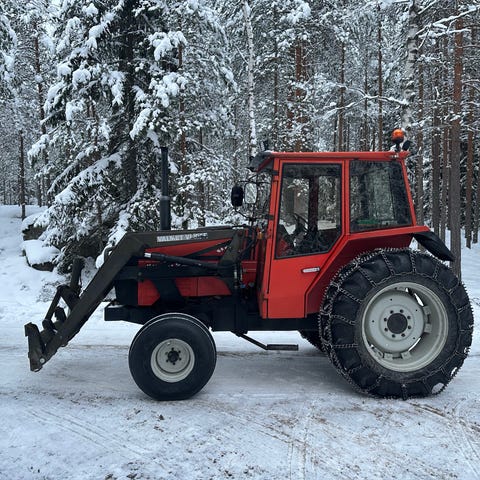 Myydän Valmet 505 sovitteilla oleva etukuormaaja paketti. (Pitäisi sopia myös muihin -05 sarjan valmetteihin)