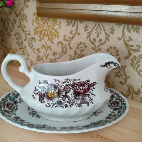 Myydään hyväkuntoinen Grindley Staffordshire ruskea-valkoinen tarjoiluastia. Halkaisija 22/ 20,5 cm, korkeus 6,5/6 cm. Reunoissa värin jälkiä.
