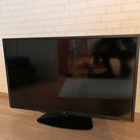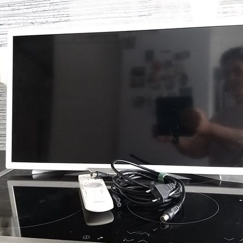 Tästä telkkari vaikka lastenhuoneeseen tai mökille DVD: katseluun tai pelailuun. Tähän ei varmaan enää saa telkkaria näkyviin ilman lisävempaimia ainakaan. Mitat: leveys 55cm, korkeus 33,5cm, syvyys 6,5cm. Jalan koko: pituus 25cm, leveys 13,5cm.