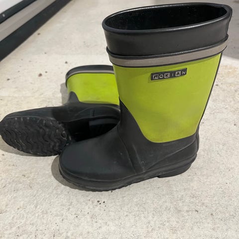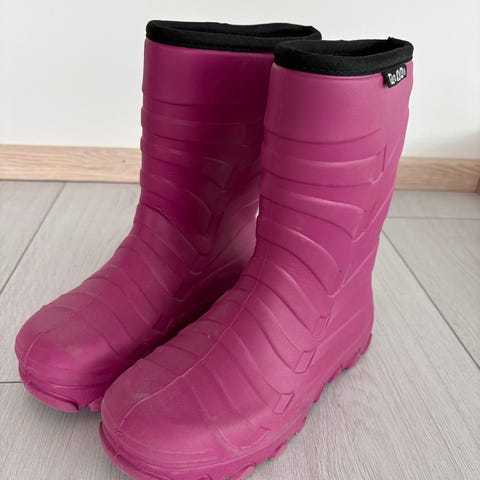 Nokian lasten kumisaappaat tytöille, koko 32. Noin 21,2 cm( ?) Violetti väri vaalealla reunuksella. Käytetty kunto.