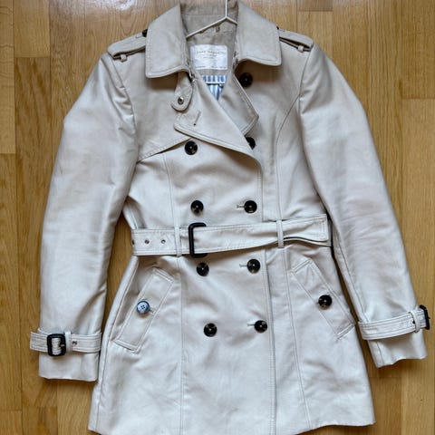 MasCaran keväinen trenssitakki naisille. Koko vastaa naisten M-kokoa, väri kaunis vaaleanbeige. Materiaalina päälliskankaassa 98 % puuvilla, 2 % elastaani, laadukas vuorikangas. Takissa on vyötärölle solmittava vyö, nappikiinnitys edessä, olkalaatat sekä hihansuissa remmit napeilla. Sopii käytettäväksi välikausitakkina arkeen ja siistimpään pukeutumiseen.
