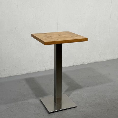 Kaksi tukevaa, hyväkuntoista kahvilapöytää, joissa on neliönmuotoinen kansi ja metallinen jalka. Neliö laminoitu puun värinen paksu taso ja metallinen jalka. Jalka on varustettu alta säätöruuveilla, mikä mahdollistaa suoristamisen tarpeen mukaan. Pöydän korkeus on 75 cm.Hieman pintalikaa alkuun pyyhittäväksi, vähäistä käytön jälkeä.Ota yhteyttä asiakaspalveluumme mikäli olet kiinnostunut isommasta määrästä.