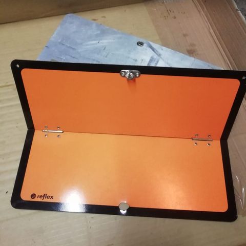 Soikea SF- kilpi, ajoneuvoon asennettava Suomen kansallisuus tunnus, joka oli käytössä ennen FIN merkkiä. Mitat kuvissa. Kevytmetalli valua.