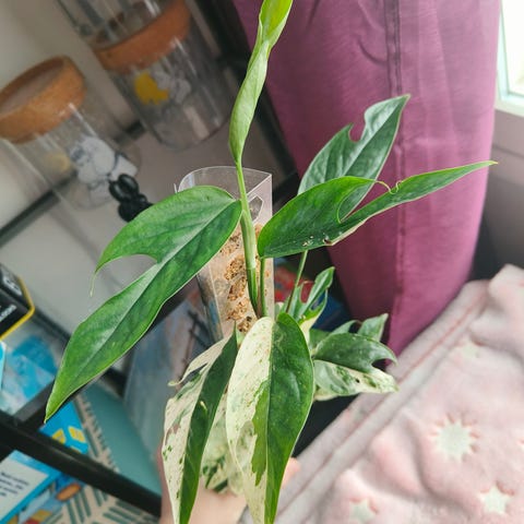 Epipremnum Pinnatum Sunburst juurtuneet ja istutetut pistokkaat. Purkissa kolme pistokasta, jotka lähteneet uuteen kasvuun. Vaikka pistokkaat ovat vihervoittoisia, ensimmäisessä uudessa lehdessä näkyvissä selkeää väritystä 😊🌿 Nouto Nivalasta tai sään salliessa postitus.