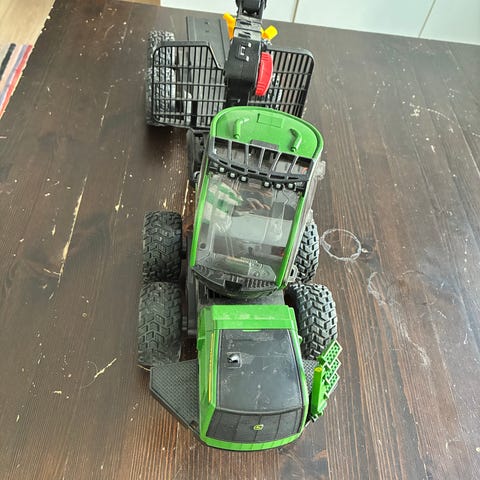 Bruder leikkuupuimuri vihreä. Muovinen maatalouslelu, jossa on ohjaamo. Puimurissa on viljasäiliö ja syöttöputki,josta tulee hitaasti pieniä "jyviä" kun kierittää putkea. Kaikki toimii. "Ratti" jolla pystyy ohjaamaan katosta puuttuu, mutta niitä saa ostettua varaosina kaupasta. Esim. https://www.karkkainen.com/verkkokauppa/bruder-45001-2kpl-varaohjauspyora?id=101725703&gad_source=1&gad_campaignid=15918710584&gbraid=0AAAAAD6HXy5QEbzvriHFVrK-3bMy7aAh4&gclid=CjwKCAiAtq_NBhA_EiwA78nNWCr1Gu4AleSrcGfeZd3-pOSMQTNIRQu4KsGnK9WdY4L6EeojfHgLxxoCVHsQAvD_BwE