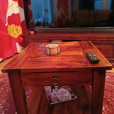 Acazia huonekaluille tyypillinen "murtuma" kannessa, mutta se ei oikeastaan edes näy eikä haittaa käyttöä. Tämä kuitenkin huomioitu hinnassa.