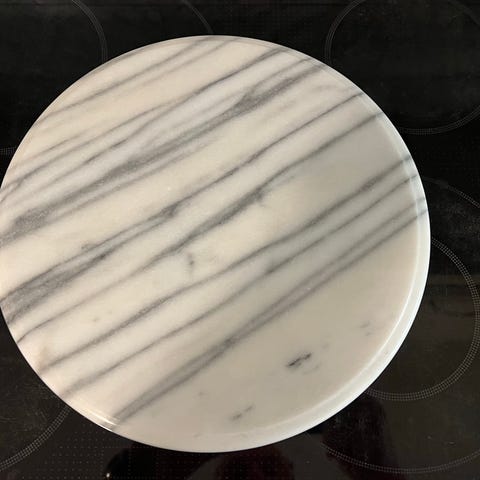 Siistikuntoinen pyörivä marmoritarjotin.