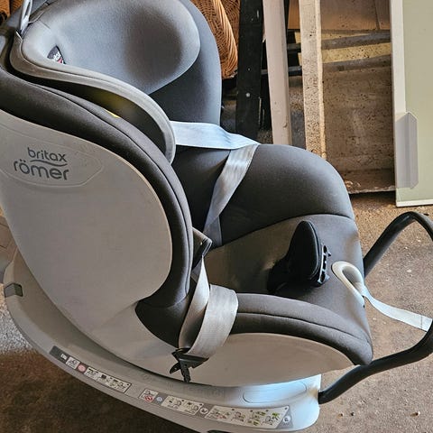 Isofixiin menevä turvaistuin, jonka voi kääntää eteen ja taaksepäin. Myös taaksekallistus. Hyvässä kunnossa. Myös pienen lisäpehmuste. Seuraavalle pikkutyypille kätevä istuin.