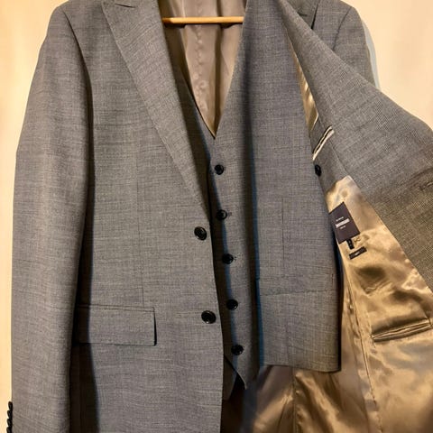 Myydään hyväkuntoinen musta Dresmannin puku: takki koko 42 slim,housut koko 28/30. Rippijuhlissa ollut päällä. Hinta 50e.